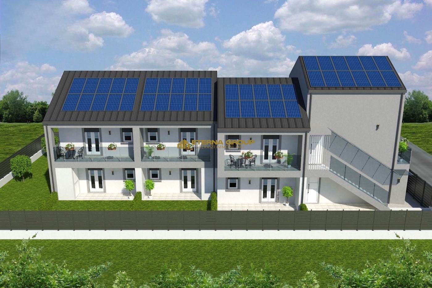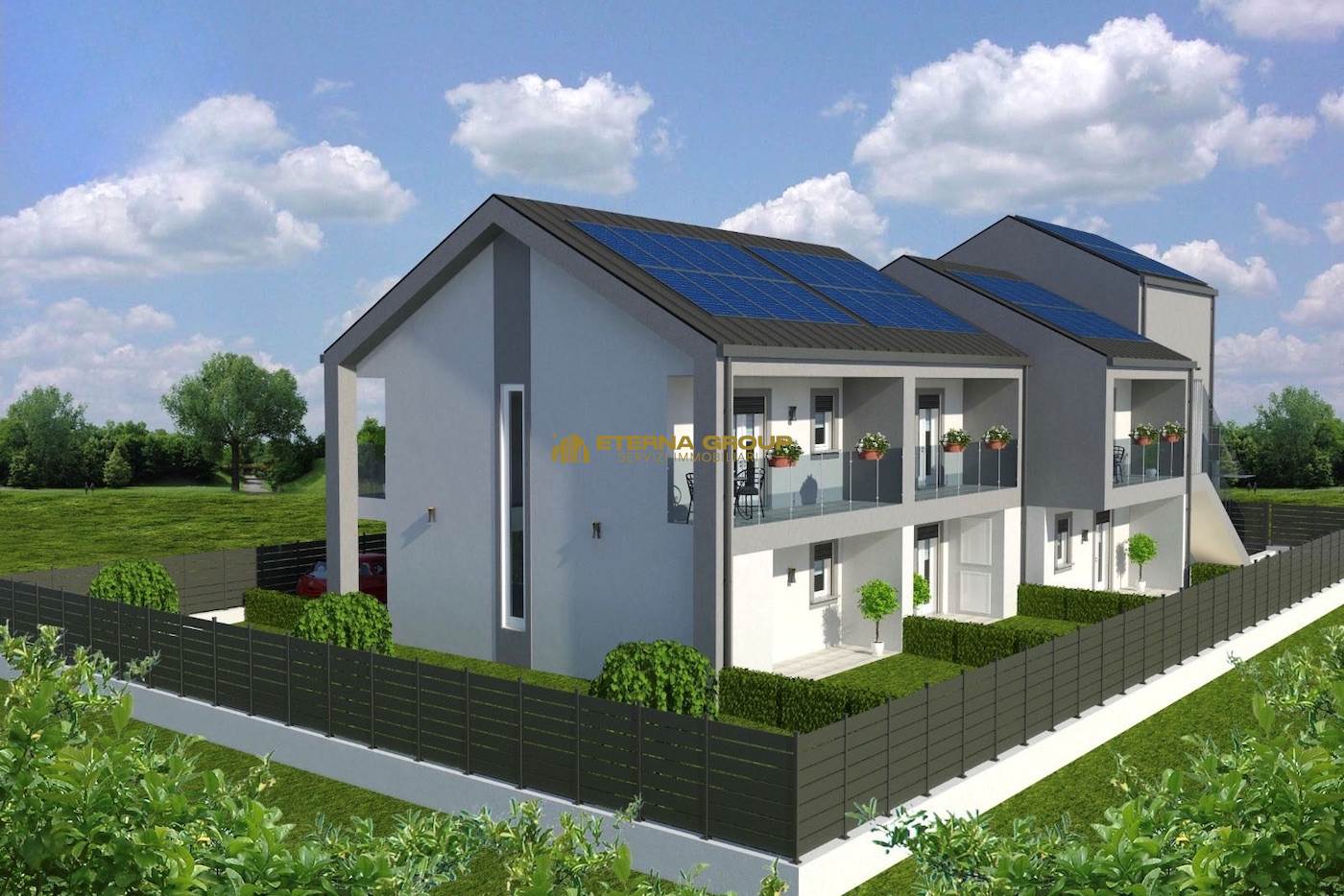 In un esclusivo complesso residenziale di prossima realizzazione, progettato per chi desidera vivere in un contesto tranquillo, moderno e ad alta efficienza energetica, proponiamo un nuovo e raffinato intervento edilizio. Il progetto, in classe energetica A4+, prevede impianto fotovoltaico con batterie di accumulo per ogni unità abitativa, a garanzia del massimo risparmio energetico e di una reale indipendenza nei consumi. Le abitazioni saranno dotate di riscaldamento a pavimento autonomo alimentato da pompe di calore, predisposizione per antifurto e climatizzazione, e delle più moderne soluzioni costruttive orientate al comfort e all’innovazione. Il lotto ospiterà 4 unità immobiliari: 3 villette a schiera e 1 appartamento bilivello con ingresso indipendente. Ciascuna proprietà sarà dotata di giardino privato e autorimessa. Ogni soluzione offre ambienti moderni, funzionali e completamente personalizzabili.